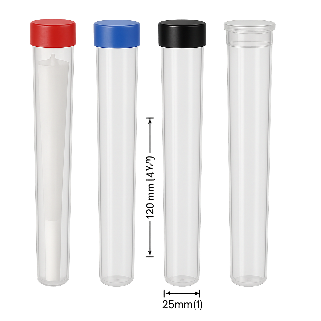 Tubos herméticos (pop-top/rosca): apertura cómoda, cierre fiable y control de olores. Perfectos para llevar un cono en el bolsillo o la mochila sin deformarlo.